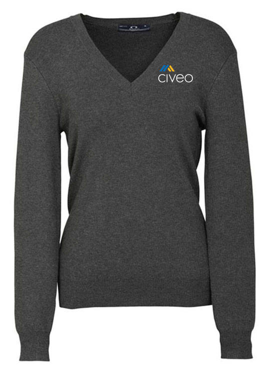- Ribbed “V” neckline, armhole/cuffs and hem