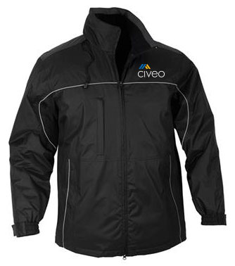 - High wind collar with hidden zippered hood and adjustable drawstrings